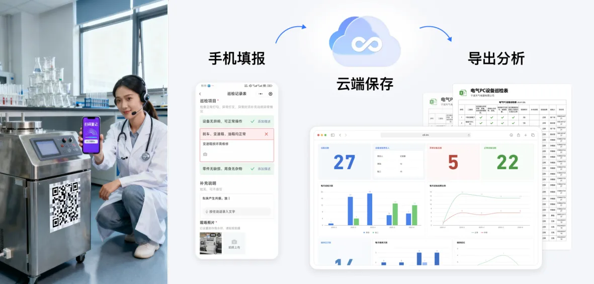 - 一物一码建档:每台实验设备生成专属二维码,扫码即查设备参数、操作手册、维保计划、责任人,替代纸质台账。