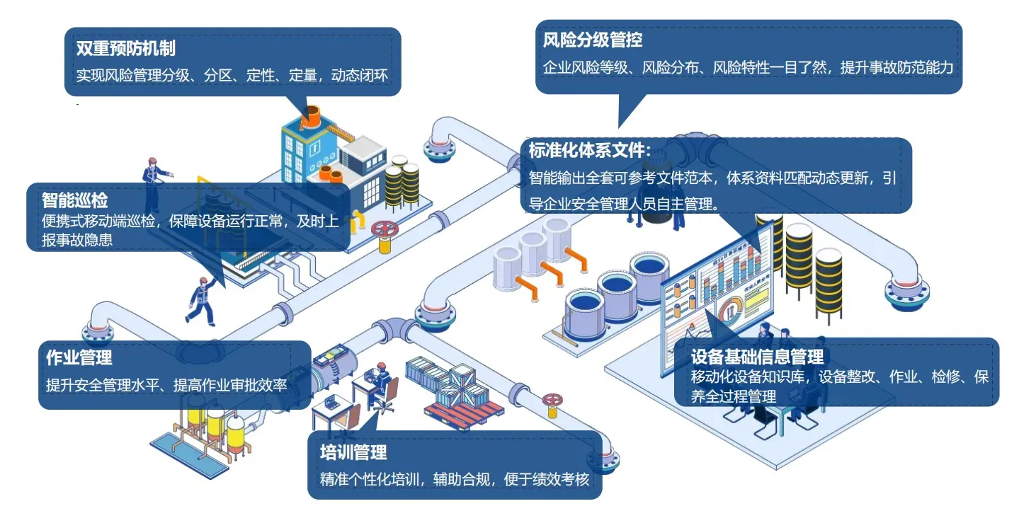- 管控精准:风险、隐患、库存、工单等实时监控,责任精准到人,安全事故率降60%,隐患整改率98%+