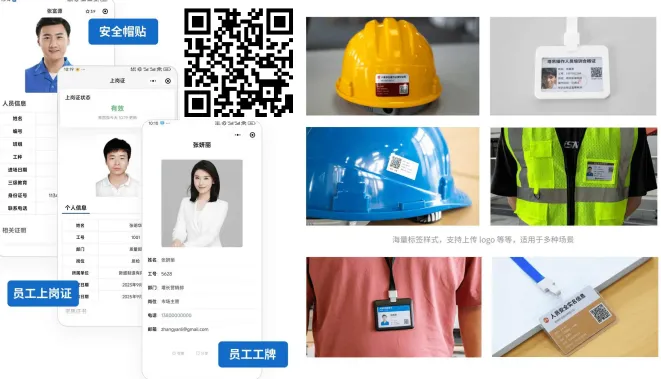 - 为每位员工生成专属人员管理二维码,绑定身份证、从业资格证、岗位证书、入职信息等核心档案。