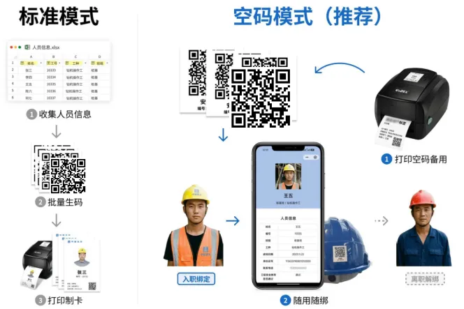 3. 日常扫码应用:员工扫码完成培训签到、工单领取、安全交底确认;管理人员扫码核验信息、查看数据报表。